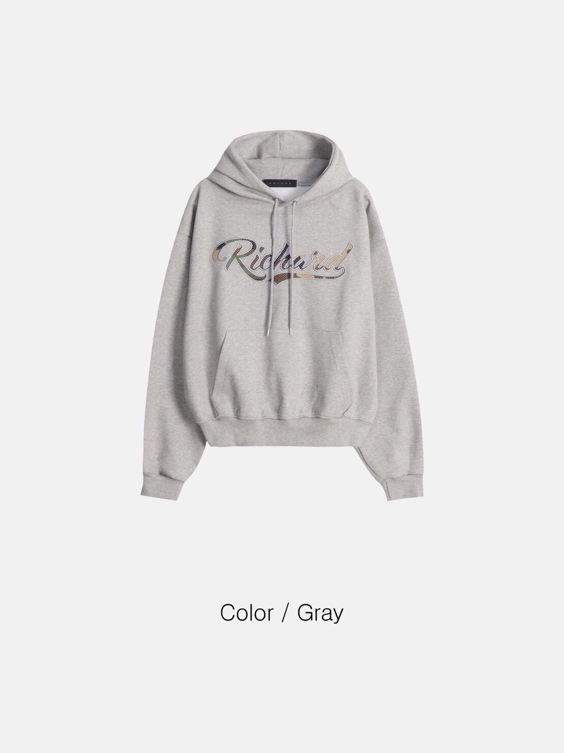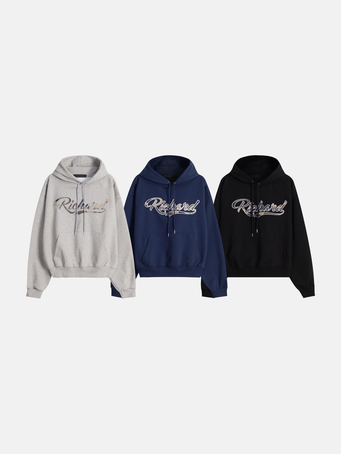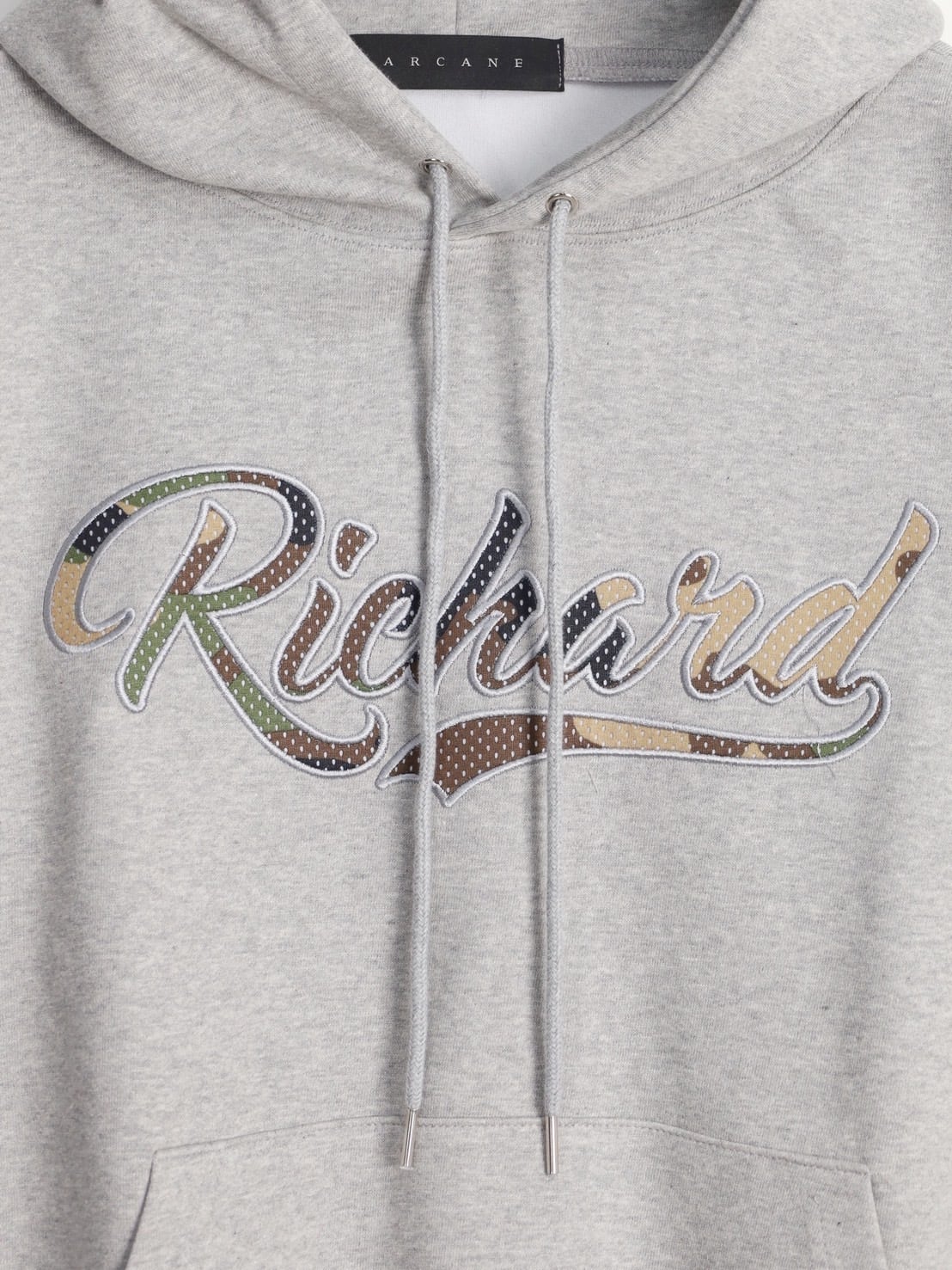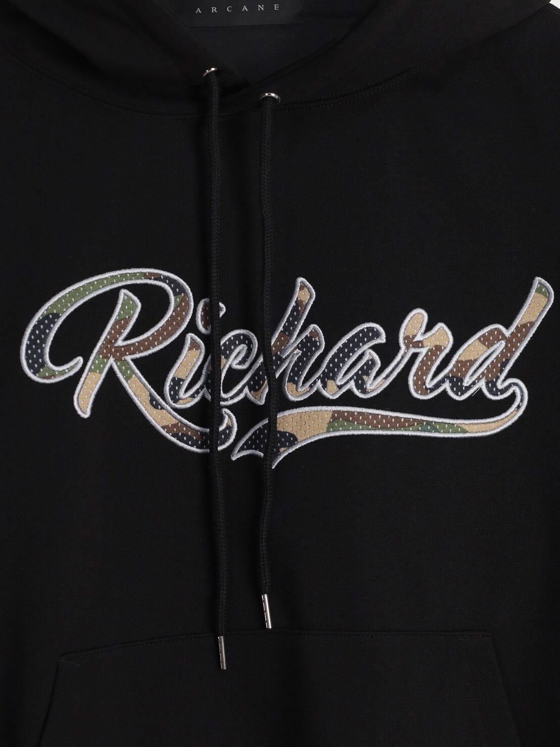 存在感のある「Richard」ロゴをフロントに配置した、ストリート感あふれるプルオーバーパーカー。