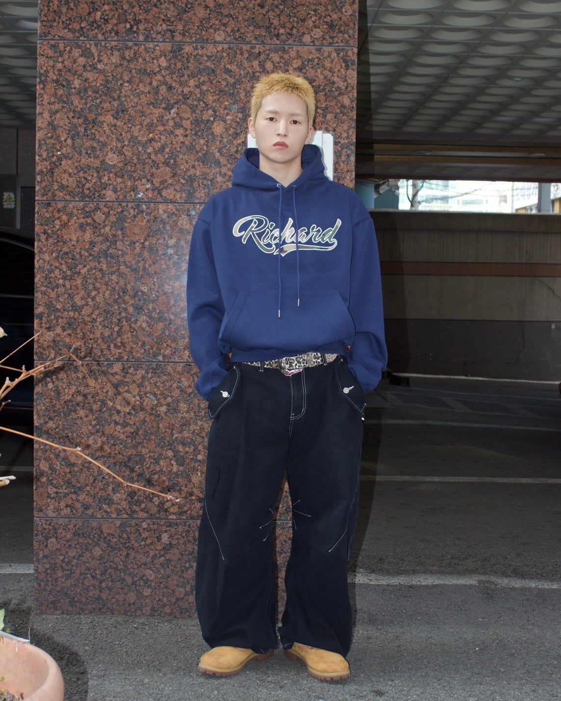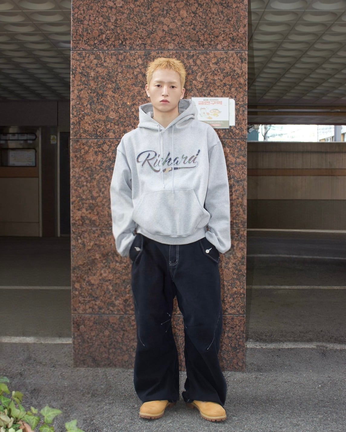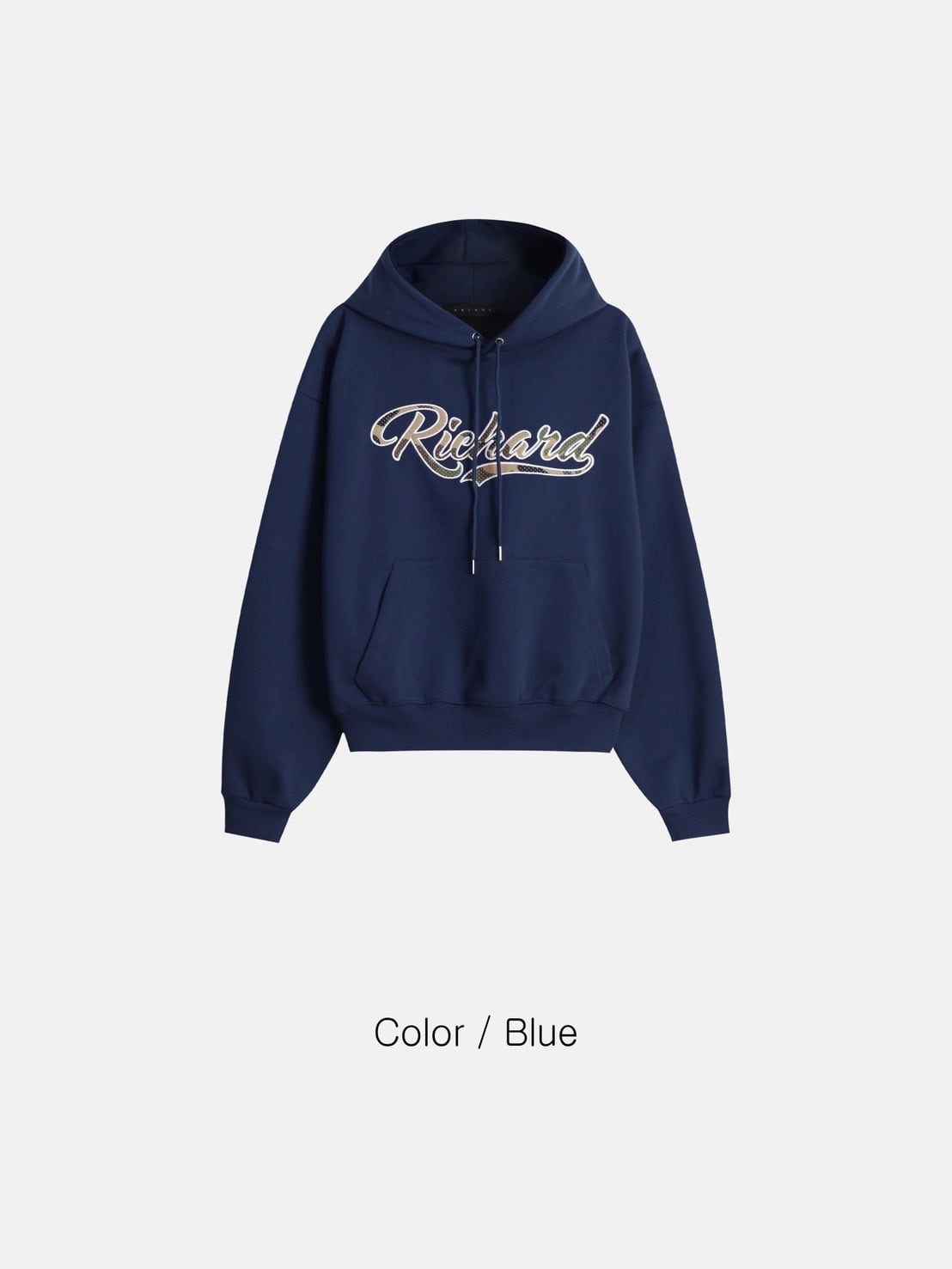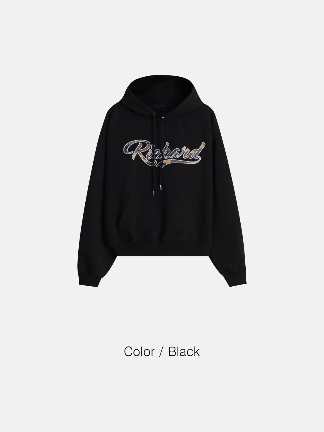 存在感のある「Richard」ロゴをフロントに配置した、ストリート感あふれるプルオーバーパーカー。