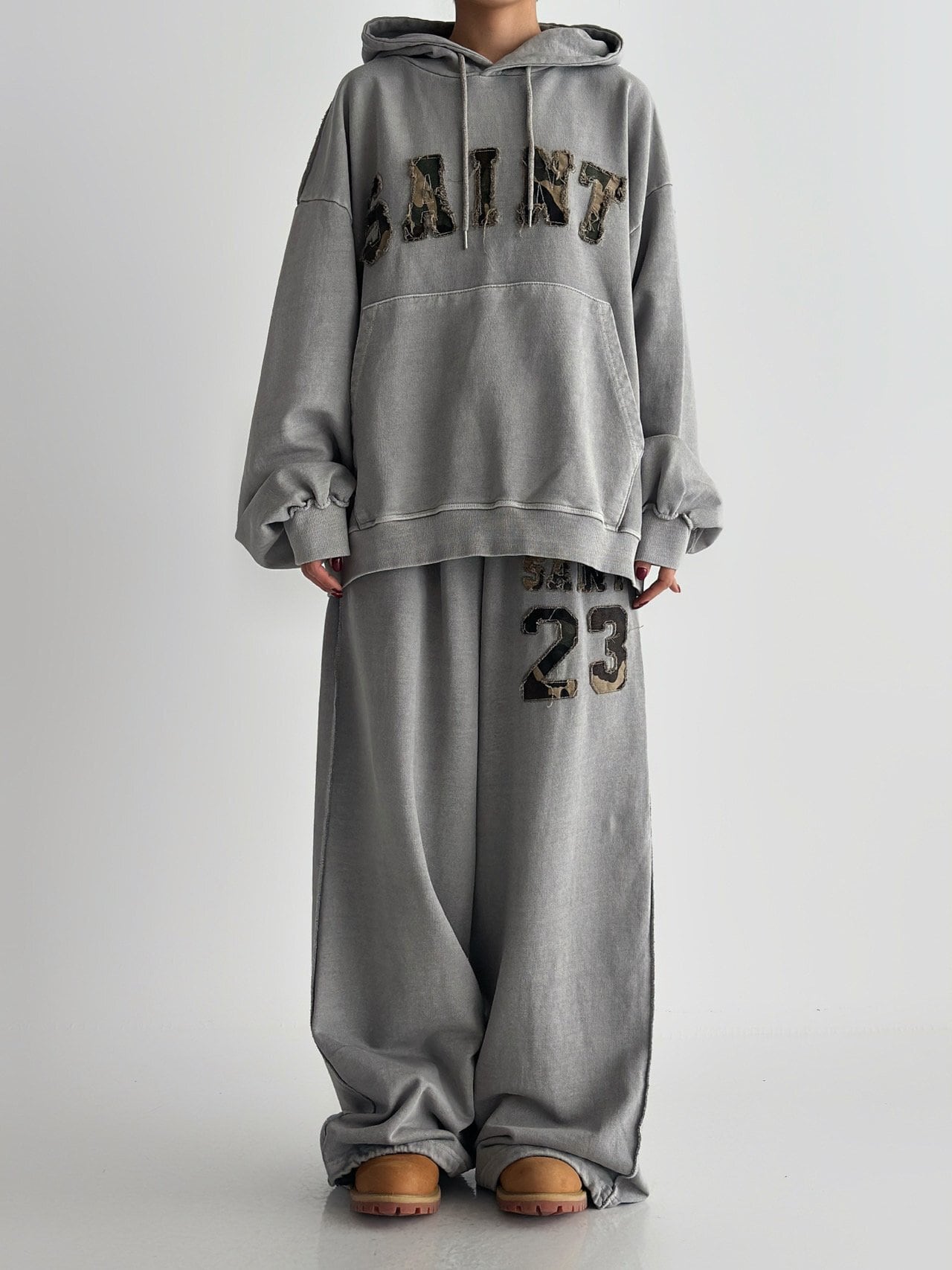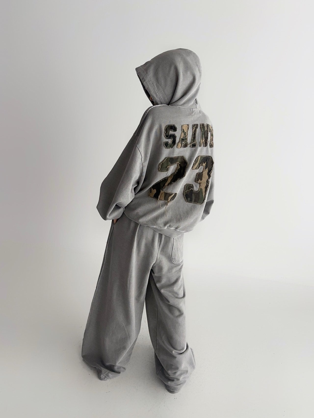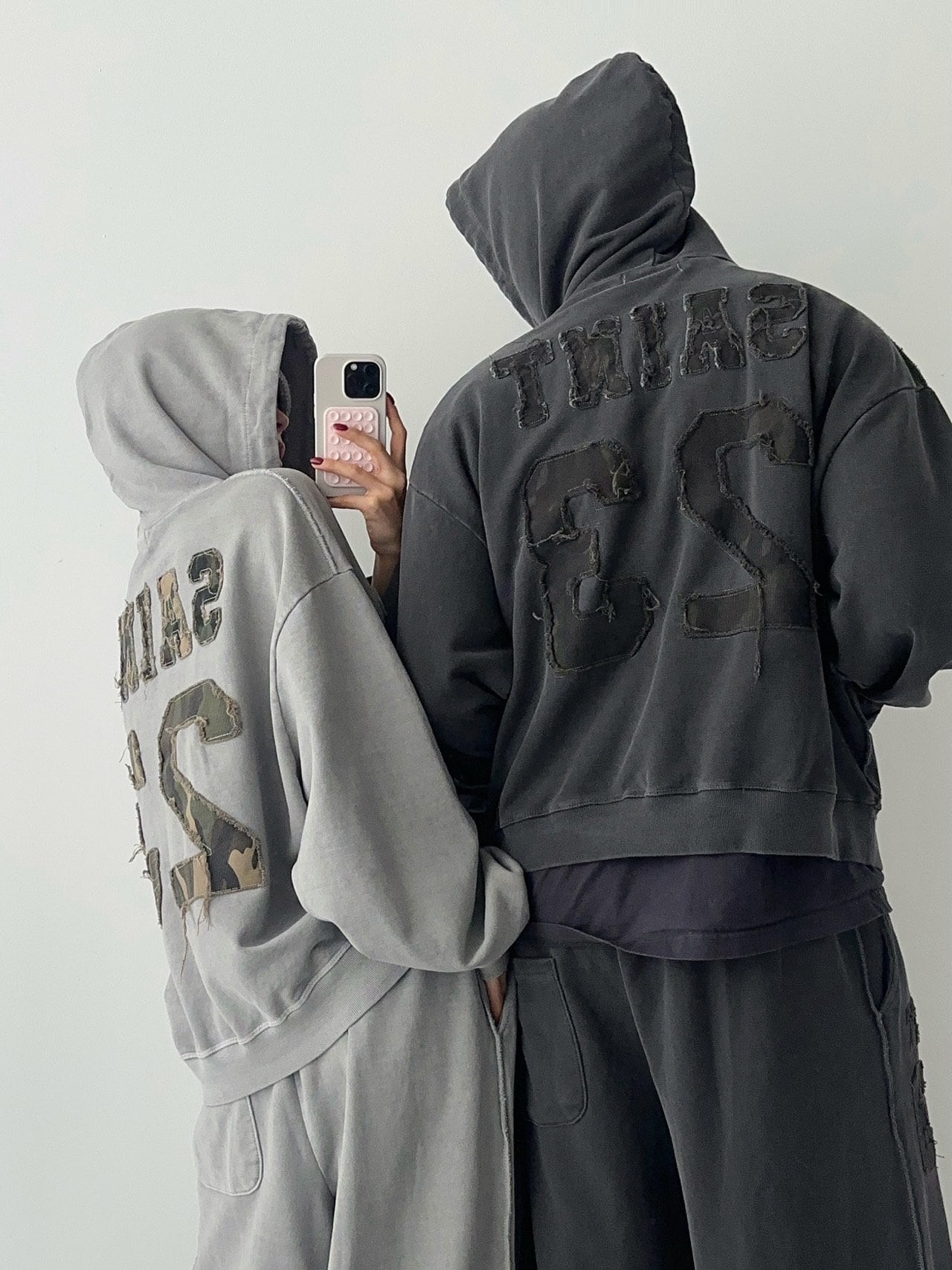 存在感のある「SAINT」「23」デザインが、ストリート×モードを融合させた一着です。