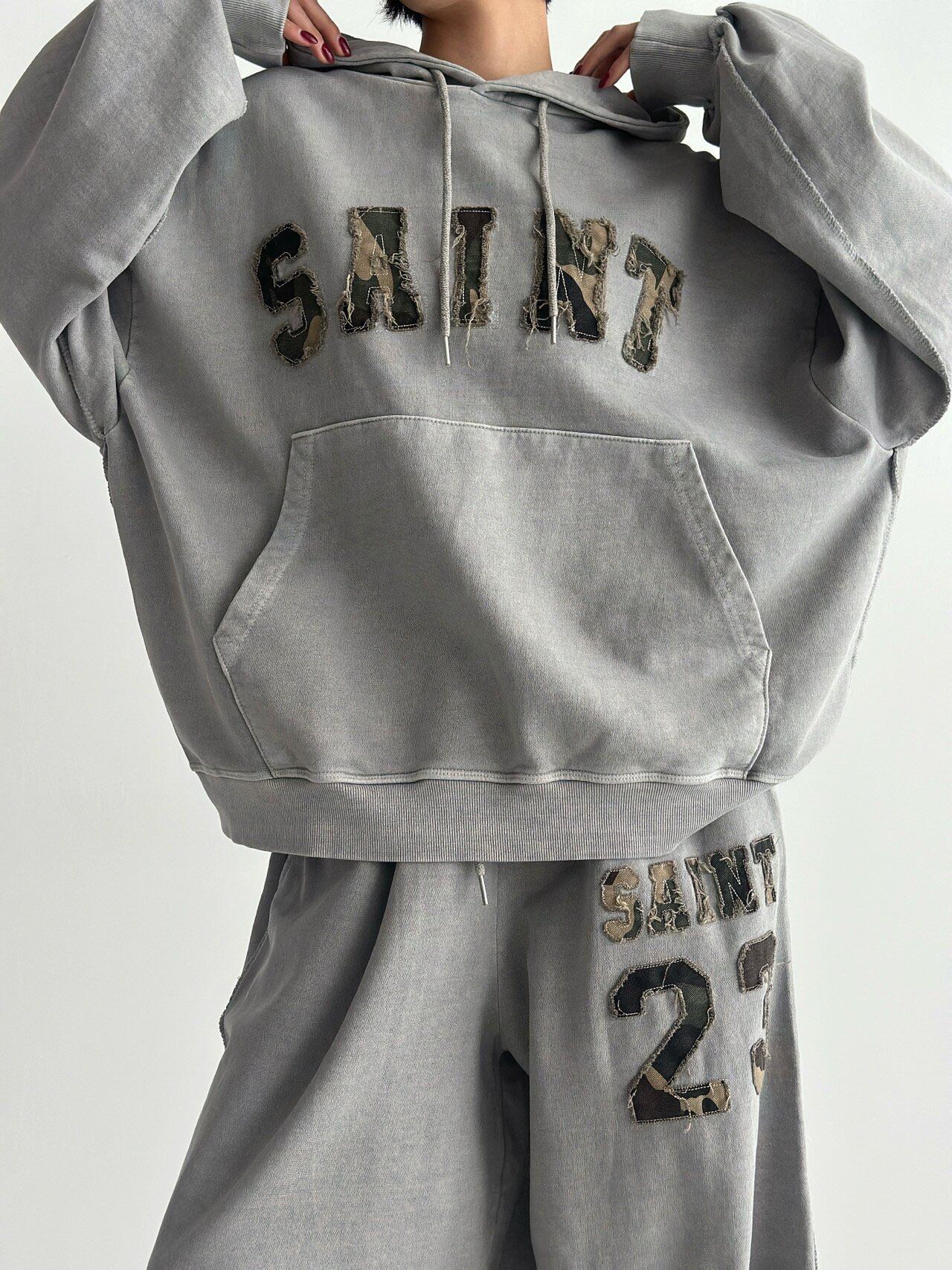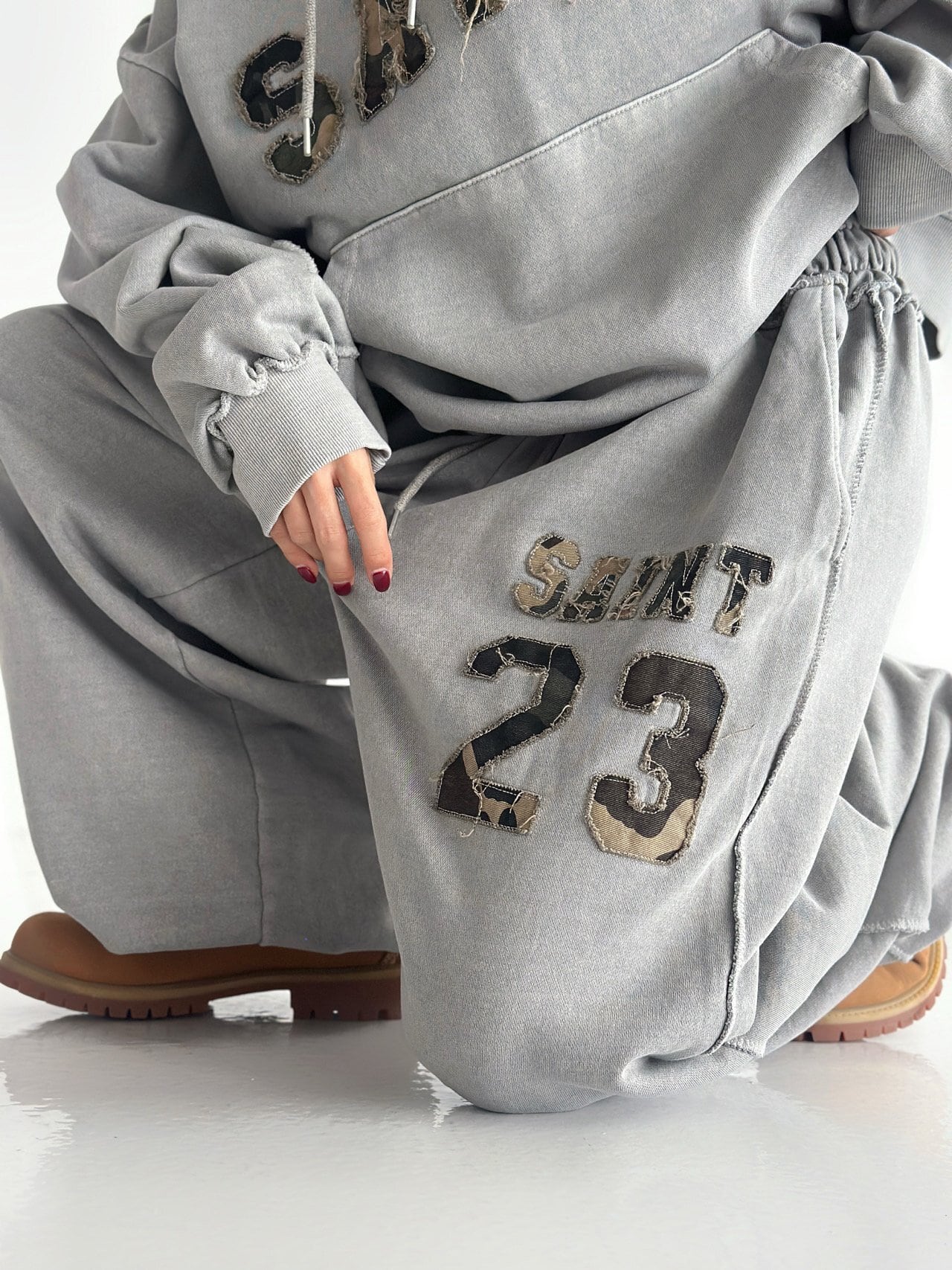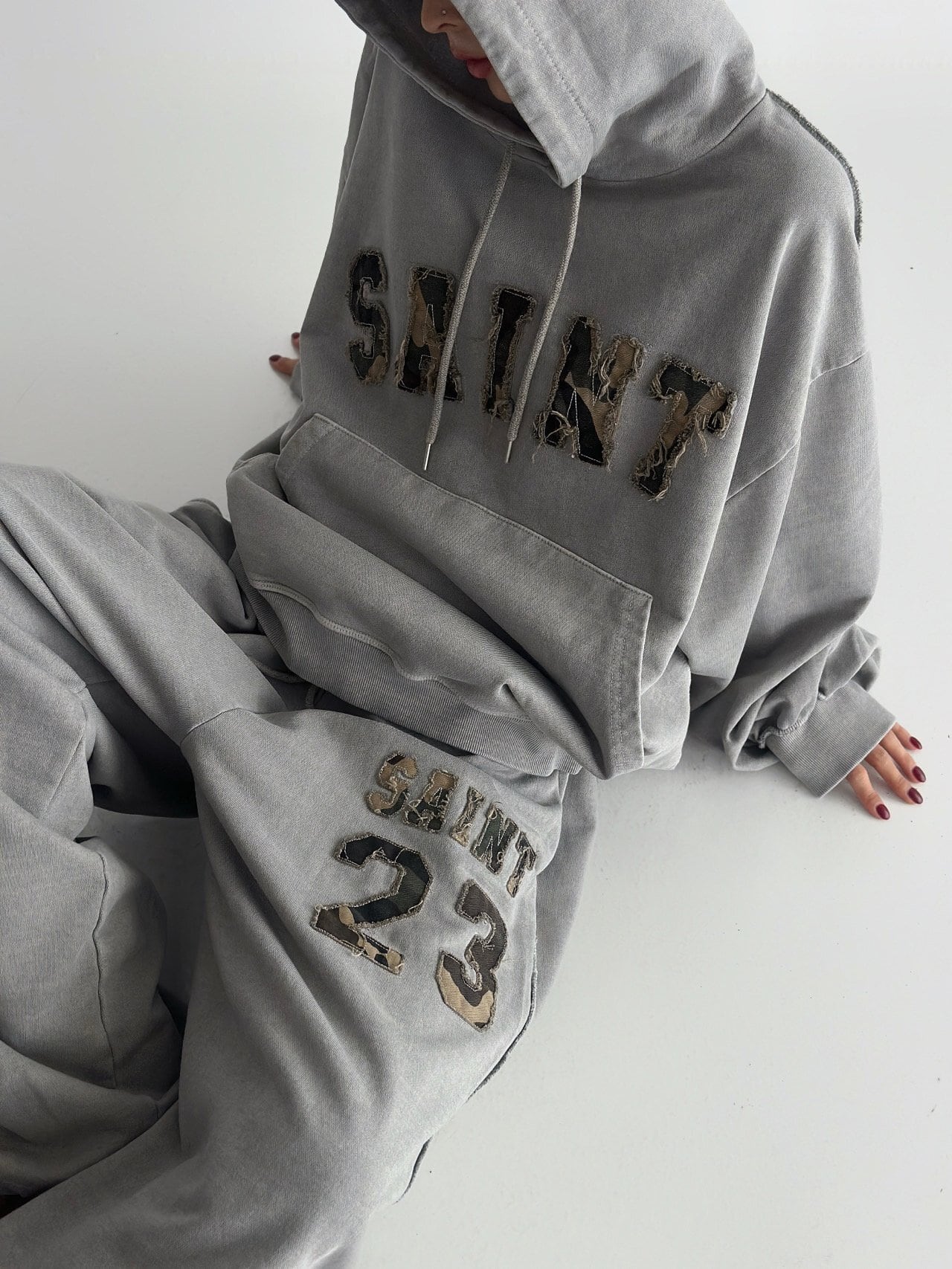 存在感のある「SAINT」「23」デザインが、ストリート×モードを融合させた一着です。